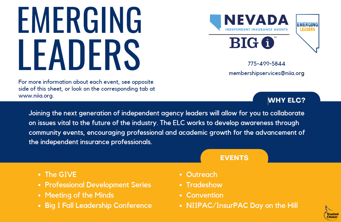 The Emerging Leaders Committee is a network of young energized insurance professionals actively engaged in the industry affairs in Nevada. We are the Future.